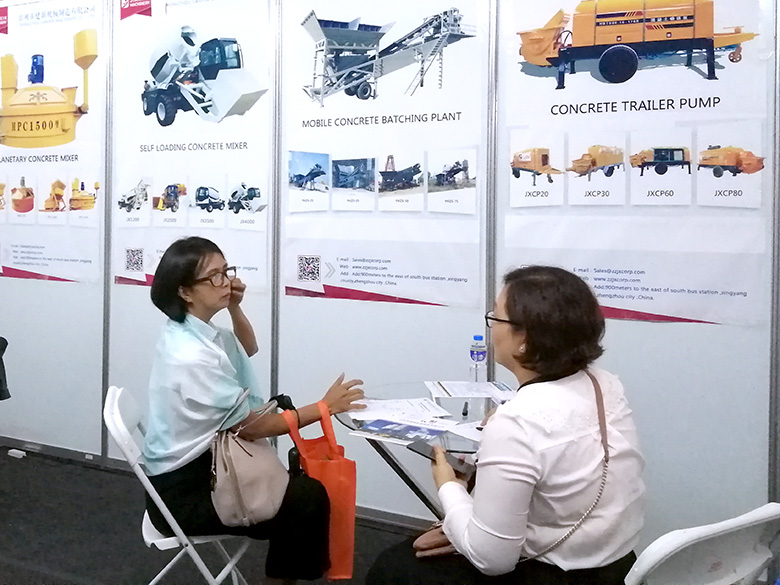混凝土搅拌站设备和稳定土拌合站设备生产商参加此次展会,向菲律宾及周边客户观众展示产品设备。